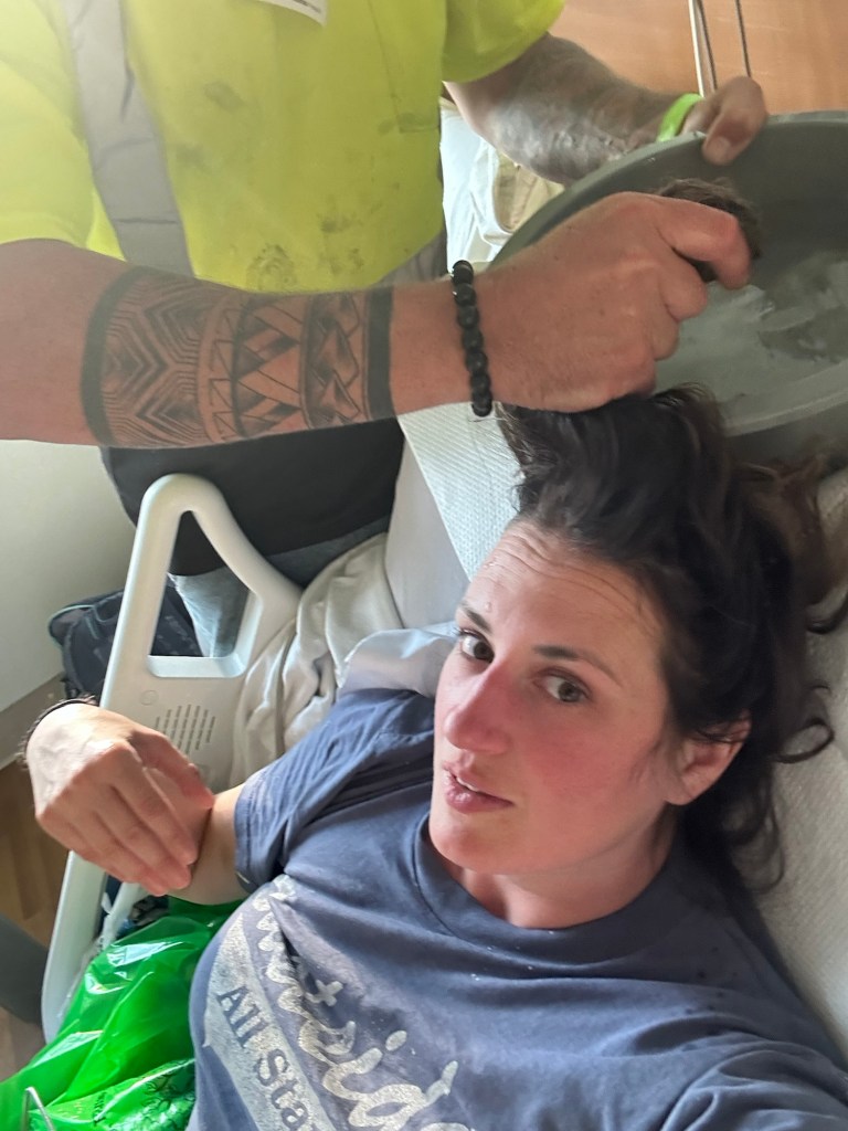 I couldn’t move. I had to use a bedpan to pee. It’s funny how something so humiliating becomes normal in the worst of circumstances. I was so grateful, because I do not think I could have stood up. Originally, I told them I was willing to use a catheter.