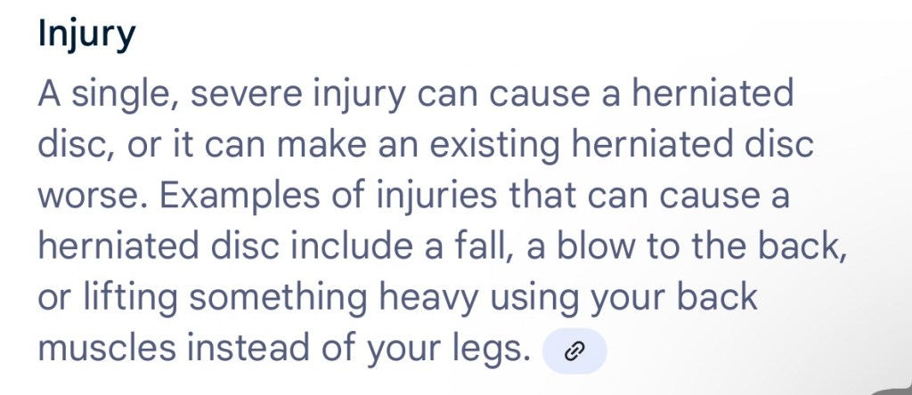 And that’s what it was, in injury to the spine. I didn’t have degenerative disc disease nor did I suffer from a spinal deformity or significant back issues. No, up until this point, I would not have classified myself as a person with a “bad back.” In my life I had thrown my back out less than 3 times. When this happened I went to the chiropractor for a few adjustments. It was resolved within a couple of days. Simple.